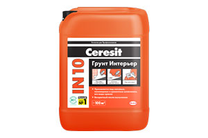 Ceresit IN 10 INTERIOR особенно рекомендуется для поверхностного укрепления и пропитки ангидритовых, гипсовых, ячеисто-бетонных оснований. Грунтовка проникает в основание и связывает зерна наполнителя, однако при этом не увеличивает прочностные параметры по всему сечению основания.