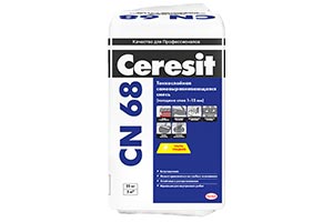 Самонивелирующаяся смесь Ceresit CN 68 предназначена для выравнивания бетонных, цементнопесчаных и ангидритовых оснований пола последующей укладкой таких покрытий, как линолеум, ковролин, ламинат, керамическая плитка, плита ПВХ и других полимерных покрытий в жилых, общественных, административных зданиях, а также в помещениях с малой интенсивностью воздействия жидкостей.